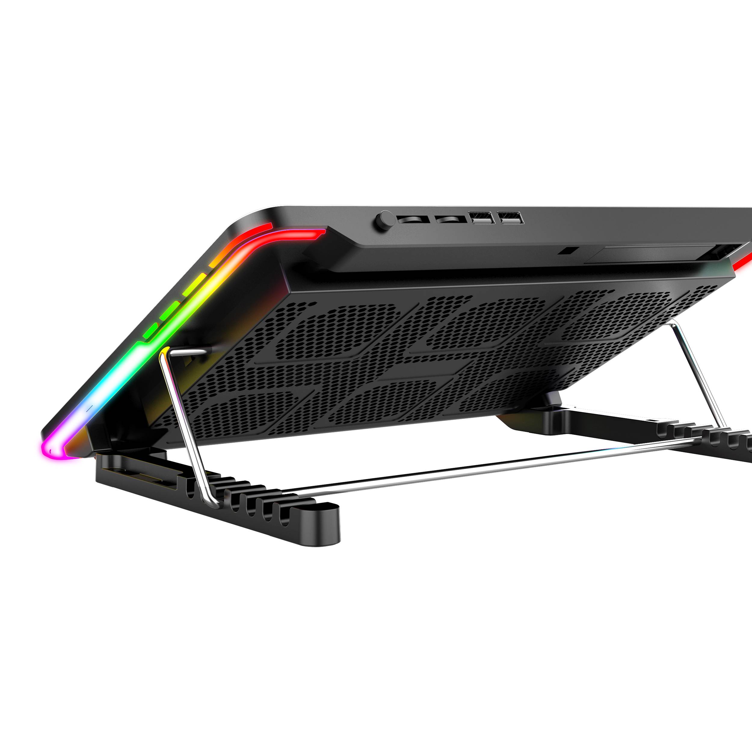 دارای۷ زاویه برای تنظیم ارتفاع – سرعت فن: ۲۲۰۰ دور بر دقیقه – قابلیت تنظیم سرعت فن -دارای یک درگاه USB اضافی (با قابلیت انتقال دیتا)- دارای چراغ LED فن – کاملا بی صدا-دارای نوار RGB با قابلیت تغییر زنگ در ۱۲ حالت-دارای پایه نگهدارنده موبایل